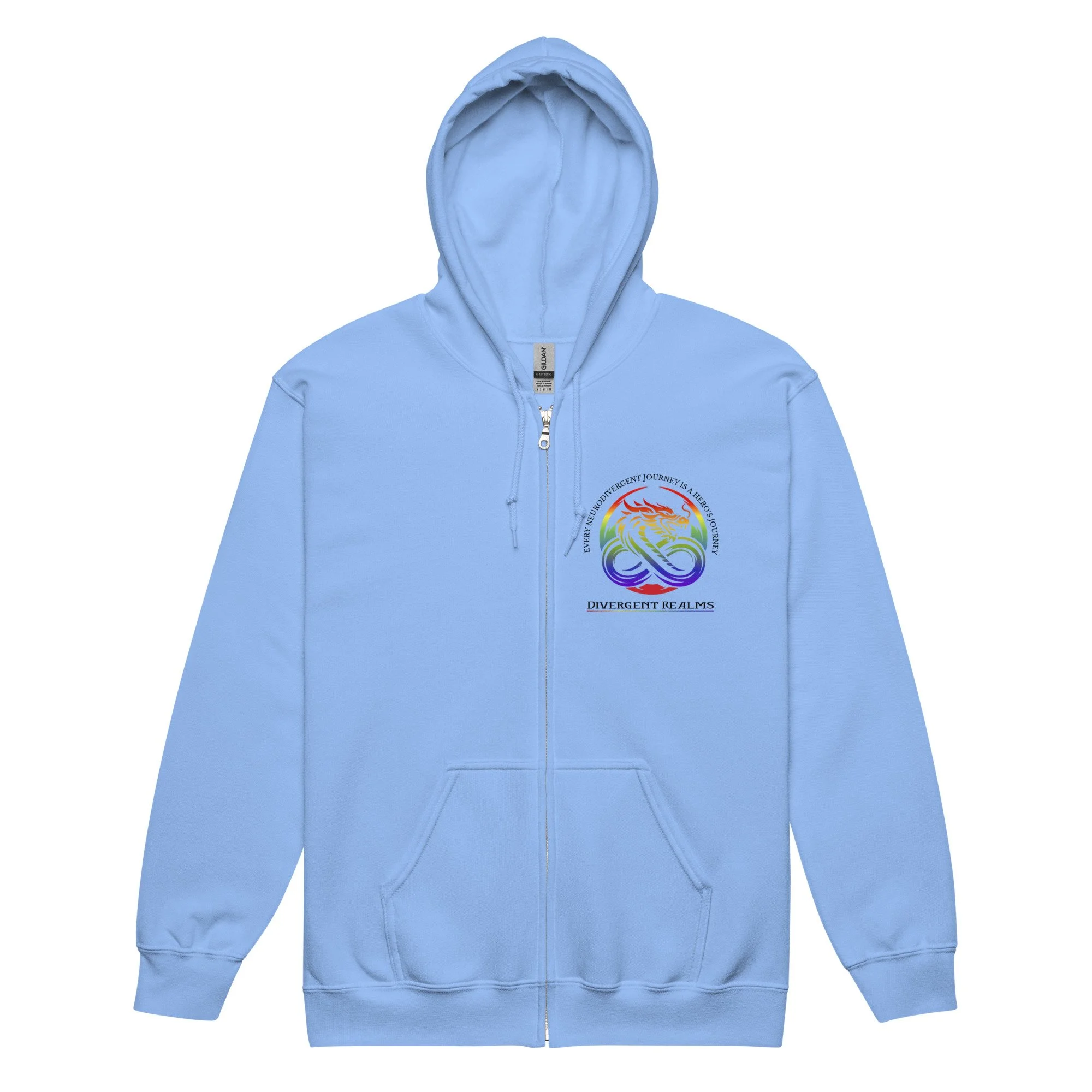 Designed with style and comfort in mind, this hoodie will quickly become your new favorite. It’s made from soft fleece inside and outside, with a sturdy metal zipper, convenient front pockets, and a hood with color-matched drawstrings.